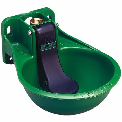 Large bol synthétique résistant aux chocs. Idéal pour les chevaux ou les bovins, c’est le meilleur rapport qualité-prix de la gamme. Le Forstal est équipé d’une robinetterie en laiton 3/4” à l’efficacité et la fiabilité éprouvées depuis plus de 20 ans. Modèle avec large palette horizontale synthétique très facile à pousser. 4 points de fixation, dont 2 oblongs pour faciliter le montage. Raccordement 3/4” (20×27 mm) par le haut ou le bas. Débit de 13 l./min à 4 bars.