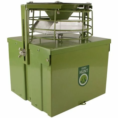 Ce distributeur alimentaire automatique est adapté pour les animaux sauvages. Conçu avec un boîtier métallique robuste et résistant aux intempéries, cet abreuvoir peut être verrouillé avec un cadenas (non inclus).