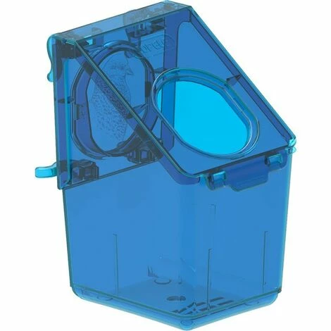 Mangeoire pour pigeons 1 département intérieur/extérieur bleu translucide. Mesures : cm : 8,5 x 9,5 x 14 h.