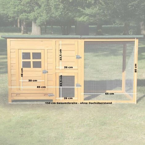 Poulailler en bois pour jardin extérieure 5 poules Cage Canard 2 perchoir Nichoir 150 x 80 x 68 cm – 147 FLEXI Standard