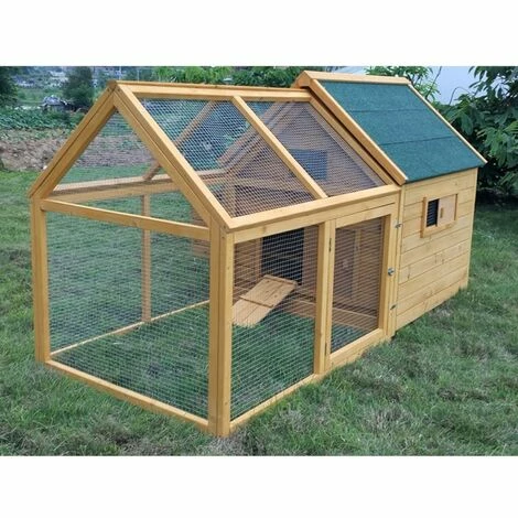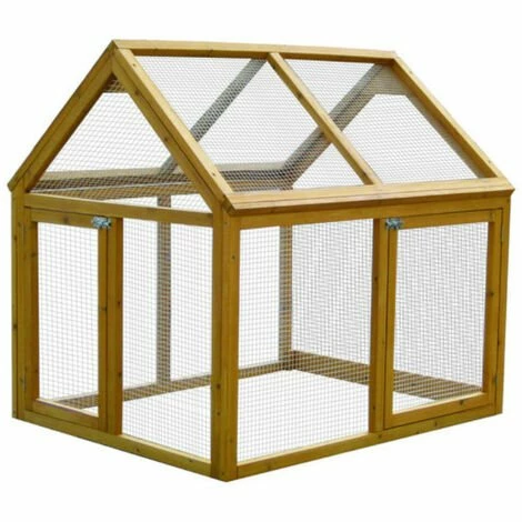 Enclos grillagé adapté au poulailler Cémani L. Grillage en acier galvanisé Montants de bois de 25 x 30 mm Dimensions : L. 110 x l. 93 x H. 106 cm 3 côtés grillagés + 1 côté ouvert à fixer sur le poulailler 2 ouvertures sur les côtés.