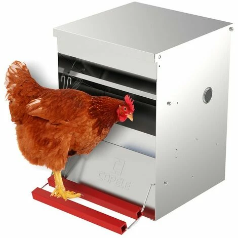 Mangeoire anti-nuisibles Safeed en acier galvanisé, d’une capacité de 6 kg pour nourrir jusqu’à 4 à 5 poules. Cette mangeoire est conçue pour empêcher les rongeurs, les oiseaux ou les limaces d’accéder à la nourriture, ou qu’elle se déverse au sol. L’ouverture de la trappe est extrêment silencieuse pour ne pas effrayer les poules. Lorsque la poule monte sur les barres rouges, elle déclenche l’ouverture de la trappe et accède ainsi à la nourriture. Il est possible de régler le déclenchement de l’ouverture de la trappe en fonction du poids de la poule, 3 positions de réglage sont possibles: 250 g, 500 g et 750 g. La mangeoire peut être posée au sol, ou suspendue. Elle peut se placer à l’intérieur ou à l’extérieur du poulailler. La mangeoire anti-nuisibles Safeed dispose de hublots transparents de chaque côté pour contrôler son remplissage en aliments sans avoir besoin d’ouvrir le couvercle. Son système anti-gaspillage permettra de faire de réelles économies ! Capacité : 6 kg Couleur : métal Matière : tôle galvanisée Dimensions : 25 x 37 x 38 cm Livré déjà montée