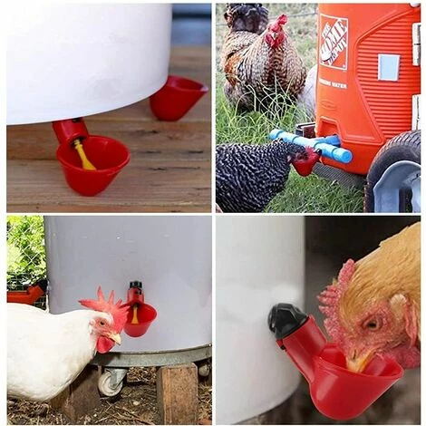 DENUOTOP Volaille Automatique Abreuvoir,6 PCS Buveur De Volaille,Poulet Abreuvoir D’eau,Buveurs Automatiques Abreuvoirs En Plastique Rouge Backyards Canard Oiseau Caille Pigeon Poule Alimentation D’eau Bol