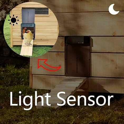 Conception à long terme : l’ouvre-porte du poulailler est spécialement conçu pour une utilisation à long terme. Il n’y a pas de fils ou de câbles, et l’ouvre-porte est alimenté par 3 piles AA (piles non incluses). Aucun câblage compliqué signifie un faible risque de défaut. De plus, l’ouvre-porte du poulailler est fabriqué en plastique de haute qualité. Facile à installer et à configurer : l’ouvre-porte du poulailler est livré avec des instructions détaillées. Vous n’avez pas besoin d’assembler l’ouvre-porte, installez-le simplement au bon endroit. Nous fournissons également du carton auxiliaire à nos précieux clients. Tout le monde peut installer notre produit en 10 minutes. Tout est pour votre commodité : Le concept de porte de poulailler automatique est pour la commodité de nos précieux clients. Le compartiment de la batterie est situé sur la surface du système d’entraînement, éliminant ainsi le besoin de retirer le boîtier pour remplacer la batterie. Multi-scène et multi-mode : La nouvelle génération d’ouvre-portes pour poulailler est livrée avec des modes de base : mode de détection de lumière et mode manuel. Différents modes peuvent fonctionner ensemble. les portes automatiques du poulailler s’adaptent à toutes les scènes. Programme de protection : La porte du poulailler est dotée d’un mécanisme de protection. Si la porte heurte le poulet, elle s’arrête automatiquement. Ne craignez pas de blesser votre mignon poussin.