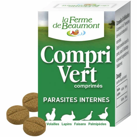 Le CompriVert est une purge en comprimés pour volailles. Plus facile à administrer ! Les CompriVert sont des comprimés à base de plantes destinés à corriger les problèmes d’hygiène intestinale propices à l’installation des parasites internes. Produit à base de plantes dont aïl, armoise et tanaisie. 2 prises à 10 jours d’intervalle. Boite de 35 comprimés sécables.