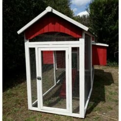 Grand, profond, entièrement équipé, ce poulailler vos étonnera par ses dimensions. Unique sur le marché, nous l’avons voulu fonctionnel et esthétique. Un côté est entièrement consacré aux pondoirs tandis que l’autre est équipé de perchoirs en espalier. Idéal pour les poules pondeuses, il est bien ventilé et équipé d’une sortie sur chaque façade avec trappe coulissante. Il peut être équipé de 1 ou 2 parcours universels. En bois teinté, il a une toiture en métal galvanisé. Livré en kit, très facile à monter.
