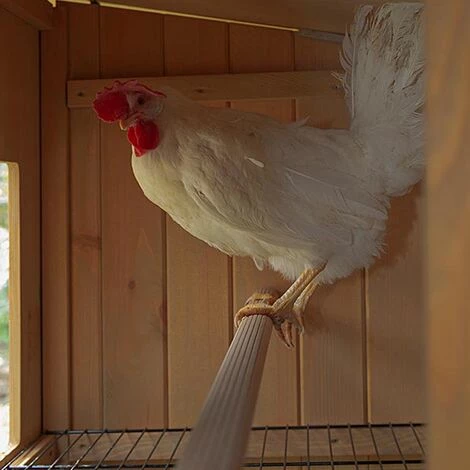 Ce modèle Hen House 30 est adapté pour accueillir jusqu’à 6 poules. Surelevé du sol, la maisonnette repose sur des pieds solides équipés avec plastique pour garantir une meilleure isolation au sol. Une échelle permet aux poules d’entrer ou de sortir facilement, la porte d’entrée est coulissante. A l’intérieur, le hen house est divisé en deux zones : l’une avec un perchoir métallique et une grille de protection, l’autre dédiée à la collecte des œufs, accessible de l’extérieur par une porte latérale équipée d’un verrou de sécurité.