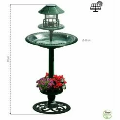 TERRE JARDIN Fontaine Abreuvoir à Oiseaux Sur Pied Avec Lampe Solaire Et Mangeoire