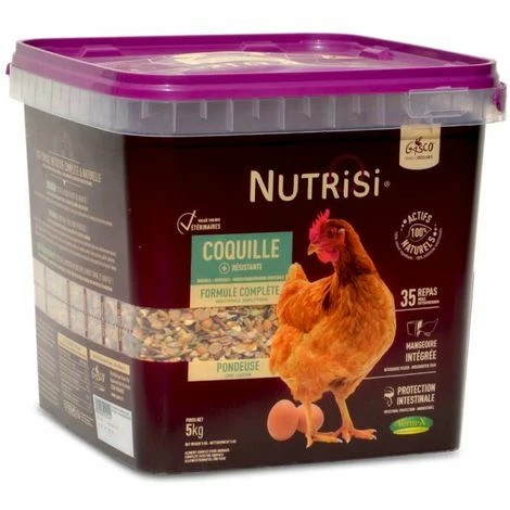 - Mélange complet formulé spécifiquement pour les poules pondeuses, enrichi en calcium pour des oeufs de qualité.