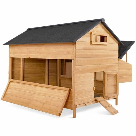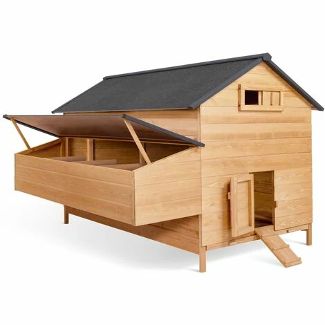 IDMARKET Poulailler Chalet 15 à 18 Poules Avec Pondoir En Bois – Naturel