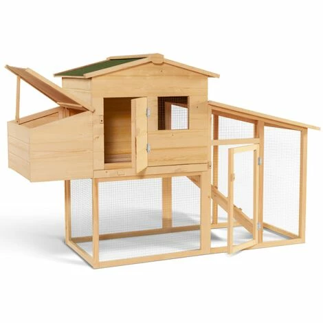 Pensé par des éleveurs pro, voici l’abri surélevé avec pondoir tout confort idéal pour vos poules ou vos volailles afin de les protéger la nuit des prédateurs ou encore des intempéries.Ce refuge pour petits animaux (lapins/rongeurs/poules/canards) a été fabriqué pour garantir leur plus grand confort:- 1 étage bien isolé avec compartiment pondoir pour favoriser la pondaison et le repos- 1 toit bitumé waterproof pour les isoler de l’humidité et de la pluie- 1 large rampe pour accéder à l’étage facilement- 1 grande porte située sur la partie inférieure pour que les animaux puissent entrer ou sortir à leur guiseEsthétique et fonctionnel, ce poulailler allie aussi confort et praticité pour vous !Ramassez tous les jours de bons œufs frais grâce au compartiment pondoir avec toit amovible !De plus ce clapier est muni d’un tiroir de déjection amovible pour faciliter son entretien et garder ainsi un espace propre.Cet abri convient pour 2 à 3 poules. Dimensions du poulailler COMFORT en bois- Dimensions totales hors tout : Longueur 172 CM x largeur 64 CM x Hauteur 110 CM- Structure en bois de sapin traité, avec un grillage métallique- Dimensions du pondoir : 48 x 35 x 35 CM- Dimensions de la porte grillagée : 56,5 x 30 CM- Dimensions de la porte : 23 x 37 CM- Dimensions de la fenêtre : 18 x 18 CM- Dimensions du tiroir : 50 x 58 CMCe modèle de poulailler existe aussi en différentes versions :- Poulailler VIP avec clapier double XXL en bois- Poulailler PREMIUM avec clapier en boisDécouvrez également tous nos modèles de poulaillers disponibles sur notre boutique en ligne !