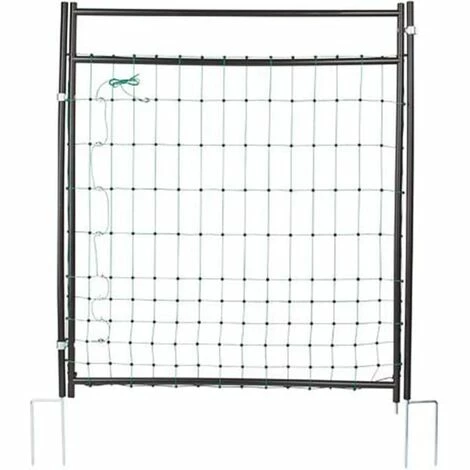 La porte peut s’ouvrir aussi large que 86 cm, ce qui est suffisant pour la plupart des équipements de jardinage. Il comprend 2 poteaux géants à deux pointes. Ce modèle est rapide et facile à installer à n’importe quelle position sur le filet. Il peut également être installé sur une clôture préexistante. Le filet vert de la porte est électrifiable, tandis que le cadre stable est isolé. Vous pouvez ouvrir la porte sans avoir à couper le courant. Ce modèle convient aux filets de plus de 95 cm jusqu’à 125 cm de hauteur.