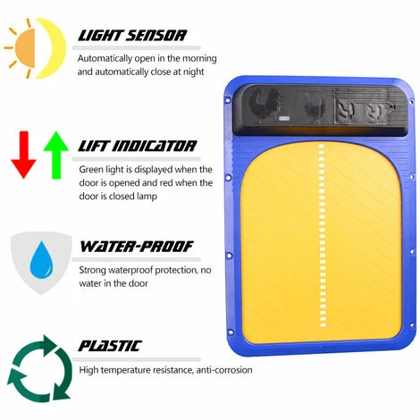 Fonction:capteur de lumière (ouvrir la porte avec une lumière forte, fermer la porte dans l’obscurité), peut être levé et abaissé, étanche (IP44)