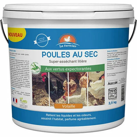 Poules au sec Le Fermier est super-asséchant pour litière de poules et assainit l?habitat des volailles.