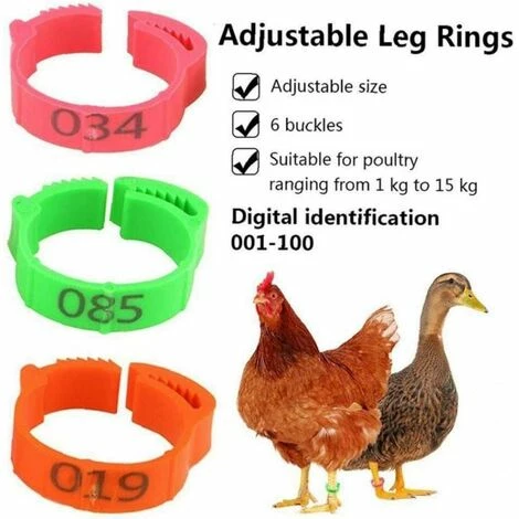MACARON Poulet Taille De L’anneau Réglable Volaille Jambe Étiquette Numérique Boucle Bague Pour Canard Volaille Poulet Fournitures Agricoles 100 Pièces LO-Ron