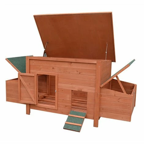 Poulailler XXL avec 4 emplacements de nidification, rampe + porte incl.