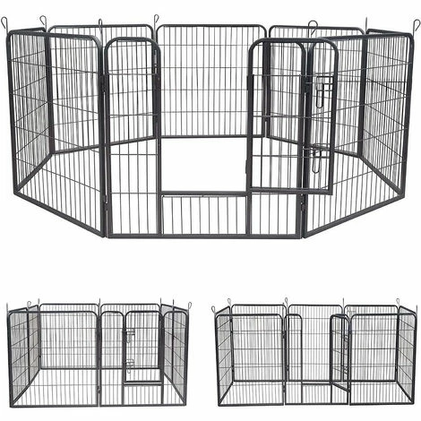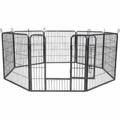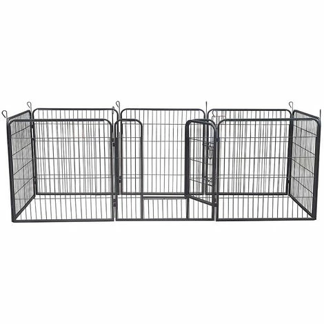 Cet enclos extérieur pour chiots de haute qualité et stable se compose de huit éléments latéraux de 80 cm de large et 80 cm de haut, suspendus l’un à l’autre. Grâce à la construction bien pensée, différents modèles peuvent être fabriqués, de sorte que l’enceinte extérieure peut être adaptée aux conditions respectives.