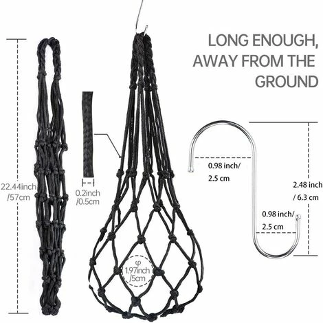 Taille: Le diamètre du sac en filet pour légumes de poulet est d’environ 1,97 pouce / 5 cm et le diamètre de la corde est de 0,2 pouce / 0,5 cm. La longueur totale de la corde est de 22,44 pouces/57 cm. La longueur du crochet en S est de 4,72 pouces/12 cm. est assez long et assez grand pour que le poulet ou les oiseaux picorent la nourriture.