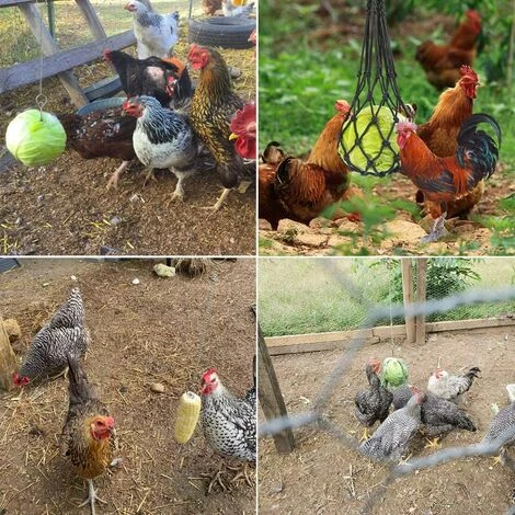 Matériaux sûrs pour votre poulet : les poches de légumes de poulet sont fabriquées en nylon durable. La fourchette d’alimentation suspendue avec chaîne est fabriquée en acier inoxydable. Assez solide pour supporter le poids de toutes sortes de fruits et légumes tels que le chou, la laitue, les cors, les tomates. , pomme pour vos poules canards oie à manger.