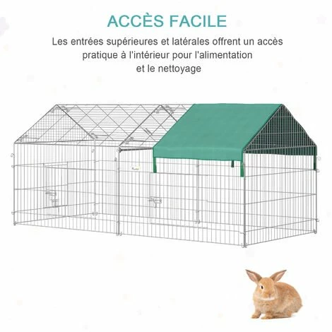 PawHut Parc Enclos Métal époxy Cage Extérieure Dim. 2,20L X 1,03l X 1,03H M 3 Portes Et Trappe Surface Abrité PE Vert – Vert