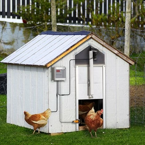 PawHut Porte Automatique Pour Poulailler – Minuterie, Capteur De Luminosité, 2 Télécommandes, Kit Installation Inclus – Alu. ABS Gris – Gris