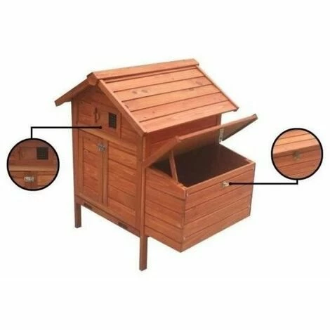 Poulailler en bois – Epaisseur du bois : 10 mm – Avec toit amovible et un perchoir composé de deux perches – Résistant et bien organisé, il est équipé de deux zones de nidification, d’une fenetre de ventilation avec grillage en acier galvanisé anti-corrosion et d’un tiroir a déjections en métal – Dimensions : 89x70x93 cm. – Matériaux robustes pour une longue durée de vie – 2 zones de nidification – Bien organisé.