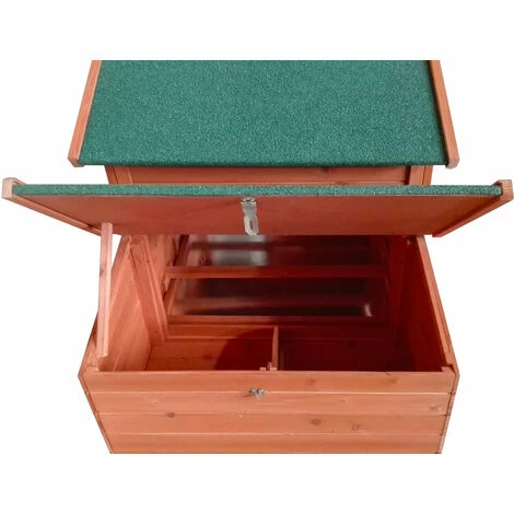 - Est inclue une couveuse comme refuge parfait pour vos poules. La couveuse dispose d’une cloison et est accessible de l’extérieur par l’intermédiaire d’un couvercle verrouillable