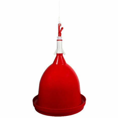 Abreuvoir automatique suspendu pour poules de la marque River System. Grâce à sa cordelette, le contenant sera simple à suspendre et vous permettra de mettre à disposition et en continu de l’eau propre et fraîche à vos animaux. Equipé d’une plaquette de réglage, vous pourrez modifier le niveau d’eau. A utiliser avec un tuyau de 12 x17 mm et fonctionne avec une pression de 0.3 bars. Poids : 1.2 Kg. Dimensions : Diamètre 38 cm x hauteur 60 cm..