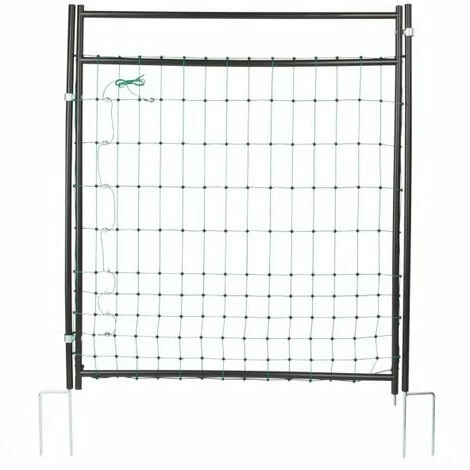 Porte adaptée à votre filet à poules avec laquelle vous pourrez entrer et sortir facilement de votre enclos. Dimensions : largeur 86 cm x hauteur 105 cm Fil supérieur renforcé de couleur verte Connexions soudées 2 piquets en PVC avec pointe double galvanisée Maille resserrée dans la partie inférieure Peut être électrifiée Cadre isolé Livrée avec accessoires de branchement Marque : Kerbl.