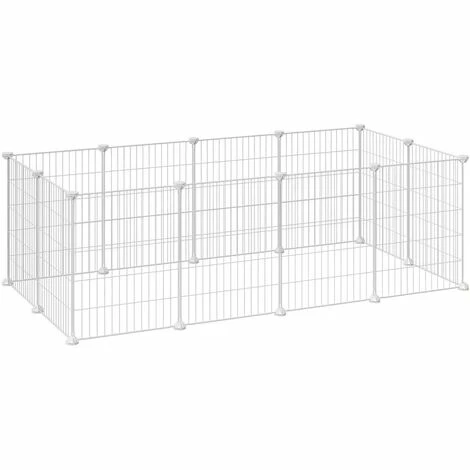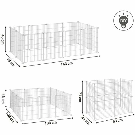 SONGMICS Enclos Modulable, Clôture Pour Petits Animaux, Cage Pour Hamsters, Lapins, Cochon D’Inde, Maille Métallique, Avec Maillet Et Serre-câbles, Usage Intérieur, LPI01W – Blanc