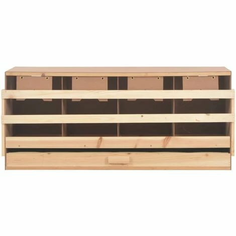 Ce nichoir fournira à vos poules un endroit confortable et protégé pour pondre leurs œufs ! Les 4 compartiments spacieux permettent à 4 poules de taille moyenne de s’installer et de pondre. Les œufs tomberont doucement à travers les trous sur le sol et dans le tiroir sous-jacent, ce qui facilite la collecte des œufs. La couche inférieure amovible vous permet de nettoyer facilement. Les perchoirs peuvent être repliés afin d’éviter que les poules perchent la nuit. Le toit plat le rend confortable pour les poules à s’installer et vous permet également d’empiler facilement plusieurs nichoirs. Vous pouvez consulter notre boutique pour les nichoirs avec un toit en pente. Fabriqué en bois de pin solide et de MDF, le pondoir est conçu pour une utilisation à long terme. Le nichoir est facile à assembler.