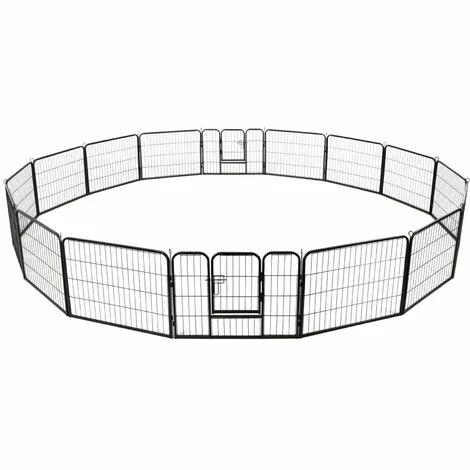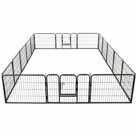 VidaXL Parc Pour Chiens 16 Panneaux Acier 60 X 80 Cm Noir
