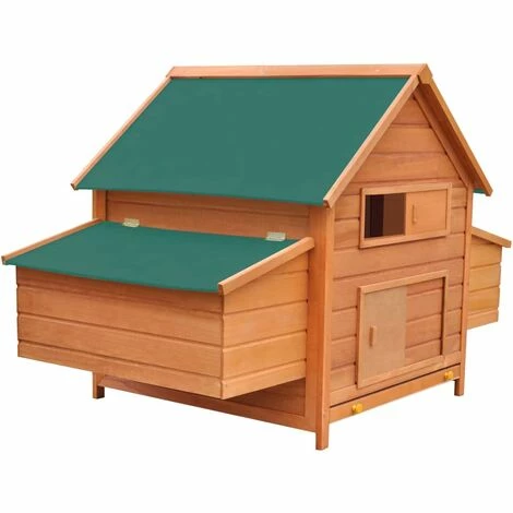 Fait en pinède de haute qualité, le poulailler est durable. Le tissu vert étanche sur les toits protège de la pluie, créant des endroits chauds et confortables pour se reposer à l’intérieur de la cabane.