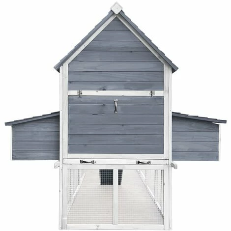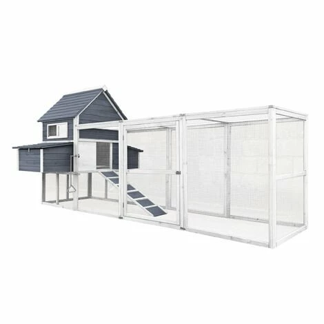 Poulailler Gris 310x150x150cm cm Bois Nichoir & Enclos Bac amovible