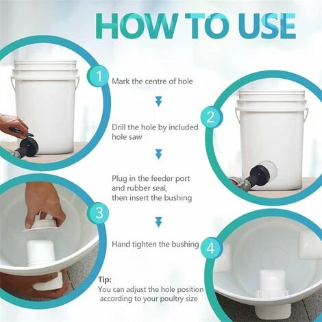 FACILE À INSTALLER: Il vous suffit de préparer le récipient et de percer des trous, aucun matériel supplémentaire n’est requis, vous pouvez donc facilement assembler la mangeoire à poulet en plastique en quelques minutes. Ce kit d’accessoires pour poulet comprend 4 jeux de mangeoires pour poulet et une scie cloche noire.