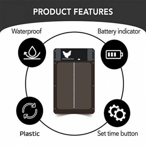 [Détection de gravité] La porte automatique du poulailler s’arrête automatiquement pendant une minute lorsqu’elle rencontre une créature, évitant ainsi des dommages accidentels aux créatures telles que les poussins et les canards【Pièces en aluminium】Les portes et les rails de guidage tout en aluminium réduisent la résistance au frottement et augmentent la durée de vie ; et utilisent des revêtements en poudre de haute qualité pour des combinaisons de couleurs fines (spécialement conçues pour les environnements extérieurs)