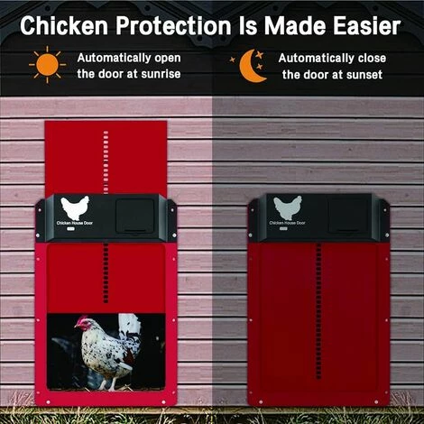 Yoouyida Porte Poulailler Automatique Avec Capteur De Lumière – Poulailler Entièrement étanche En Porte De Poulailler à Induction – Porte De Poulailler(rouge)